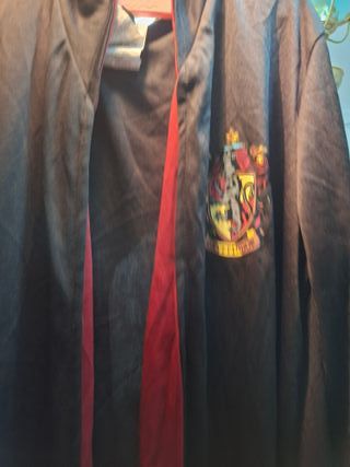 Disfraz de Harry Potter con el escudo de Gryffindor.Tengo corbata,varita y gafas - Túnica negra con detalles rojos. - Escudo de Gryffindor bordado.