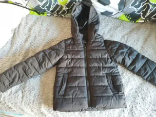 Chaqueta larga estilo puffer, ideal para el frío. - Talla 10-11 años (146 cm). - Diseño acolchado. - Capucha con pelo. - Bolsillos frontales.