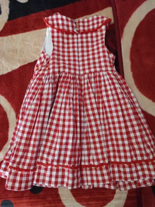 Vestido de cuadros rojos y blancos de Norma Fernández. - Talla 9. - Diseño sin mangas. - Cuello con volante. - Bajo con detalle de volante.