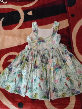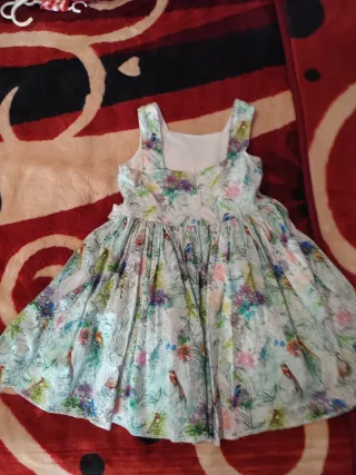 Vestido de la marca Alhuka, talla 7, con un bonito estampado. - Diseño con flores y pájaros. - Ideal para ocasiones especiales o uso diario.