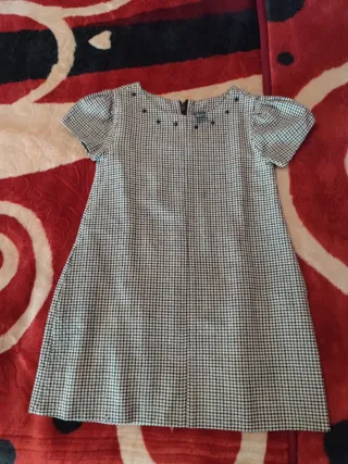 Vestido de la marca Zara en talla 5-6. Ideal para ocasiones especiales o uso diario. - Diseño de cuadros. - Mangas cortas abullonadas. - Adornos en la parte delantera del cuello.