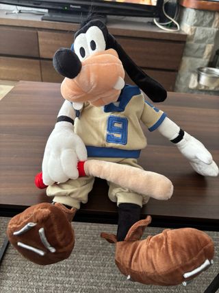 Peluche del personaje Goofy y Pluto de Disney. - Diseño detallado de los personajes. - Incluye un bate de béisbol.(Goofy). - Colores: beige, azul, amarillo y blanco. 35€ cada peluche.