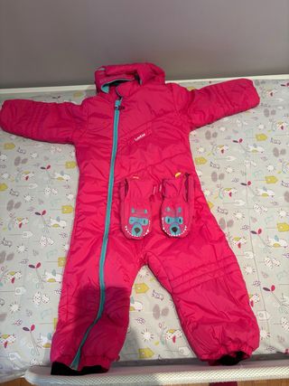 Conjunto de mono y guantes para la nieve de niña. - Mono de color rosa fucsia. - Guantes a juego con diseño de osito. - Talla 3 años.