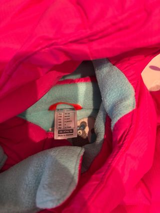 Chubasquero Decathlon rosa con capucha, talla 5/6