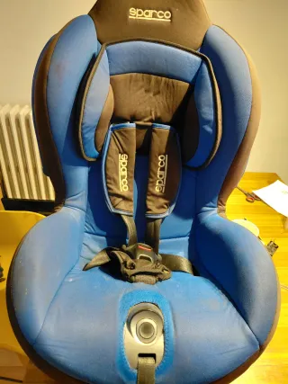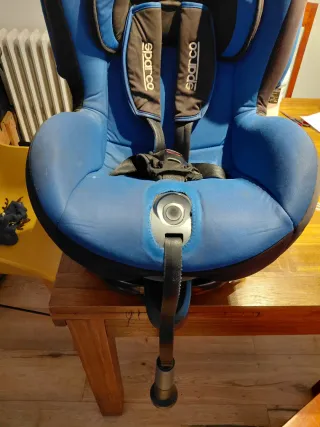Silla de coche para bebé del grupo 1, para bebés de 9kg a 18kgcon sistema de anclaje Isofix. Se entrega limpia y desinfectada - Marca Sparco. - Color azul y negro. - Incluye arnés de seguridad de 5 puntos.