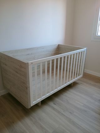Cuna de bebé blanca le falta una rueda ,con cajón