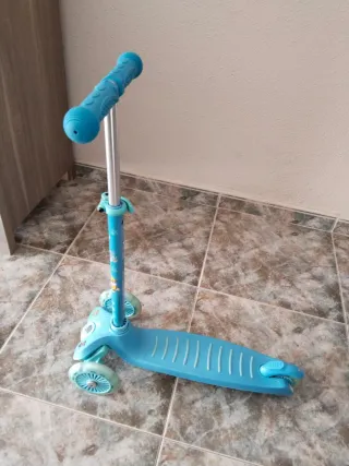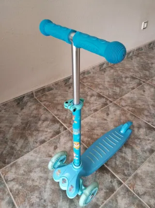 Patinete infantil de tres ruedas en color azul. - Manillar ajustable. - Ruedas luminosas. - Plataforma antideslizante.