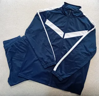 Conjunto de chándal azul de la marca UP, talla 16. - Chaqueta con cremallera frontal y detalles blancos. - Pantalón con cintura elástica. - Tejido de acetato.