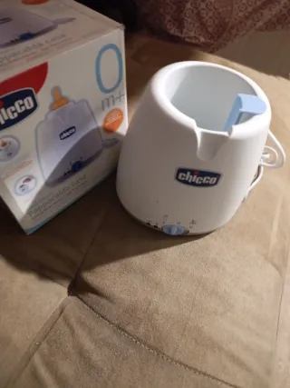 Calienta biberones de la marca Chicco, ideal para preparar las tomas de tu bebé. En buen estado - Diseño compacto y fácil de usar. - Indicador luminoso de funcionamiento. - Base antideslizante.