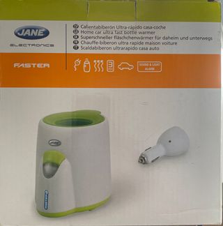 Calienta biberones y potitos de la marca Jane, ideal para usar en casa o en el coche. - Diseño compacto y portátil. - Incluye adaptador para coche. - Calentamiento rápido.