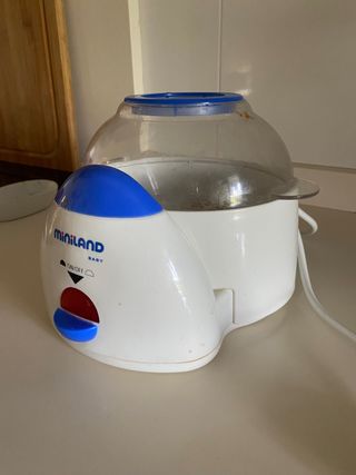 Esterilizador de biberones multifunción Miniland Super 3 Deco, en buen estado. - Esteriliza hasta 6 biberones y sus accesorios. - Calienta biberones y potitos. - Diseño compacto y funcional. - Cuece huevos y verduras al vapor - Utiliza solo vapor de agua, sin sustancias químicas. - Apagado automático cuando finaliza una de sus funciones para mayor seguridad y ahorro de energía. - Cubeta de acero inoxidable. - Desmonable para facilitar su limpieza