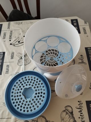 Vendo estirilizador eléctrico con vapor caliente que se dirige directamente al biberón , no requiere de productos chimicos marca Nuk en muy buen estado. Tiene una capacidad de 6 biberones y desinfección de 8 minutos
