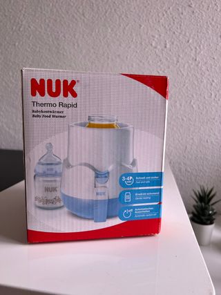 Calienta biberones nuk, nuevo. Calienta de forma rápida y homogénea mediante vapor de agua. Practico cestillo para extraer los tarritos sin problemas.