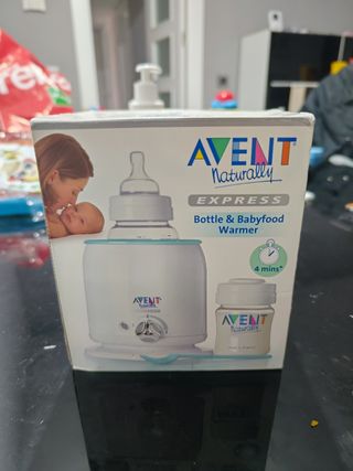 Calienta biberones marca Philips avent con funciones calienta alimentos, mantenga leche caliente, descongelar. Caliente en 3 minutos biberones de 150 ml de leche. Calentamiento uniforme. Nuevo, no llego a utilizarse.
