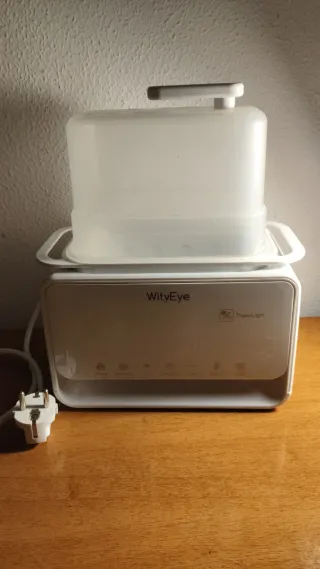Calienta biberones de la marca WityEye, con un diseño moderno y funcional. - Color blanco y plateado. - Incluye cable de alimentación.
