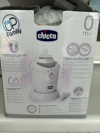Calentador de biberones y potitos de la marca Chicco. Ideal para calentar la comida del bebé de forma rápida y segura. - Diseño compacto y fácil de usar. - Indicador luminoso de funcionamiento. - Apto para todo tipo de biberones y potitos.
