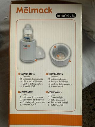 Calienta biberones y esterilizador de la marca Melmack, modelo de bebé due. - Incluye accesorios para calentar y esterilizar. - Diseño compacto y fácil de usar.