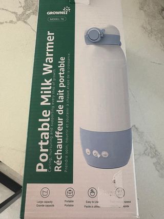 Calienta biberones portátil de la marca GROWNSY, modelo N1T. Diseñado para mantener la leche caliente hasta 24 horas. Se puede calentar comida y esterilizar después los envases y biberones. Poco usado. - Material seguro: libre de BPA y apto para uso alimentario. - Control preciso de temperatura por PTC para conservar los nutrientes de la leche.