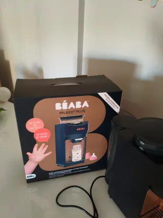 Máquina Beaba MilkEO Plus para preparar y calentar biberones de forma automática. Diseñada para facilitar la rutina diaria con tu bebé. - Calienta y distribuye agua y leche en polvo. - Función de auto-limpieza. - Pantalla digital intuitiva.