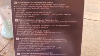 Descripción: Calienta biberón para coche y para casa. Calienta biberones y potitos. Tambiéin tiene función "mantiene caliente". Compacto, fácil de guardar y transportar. Calienta rápidamente con toda seguridad. Señal luminosa que se enciende al poner en marcha y que se apaga automáticamente. Compartimento para el cable. Producto ideal para desplazamientos. Se vende con un adaptador para el encendedor del coche y 1 pinza botecito. Opciones: