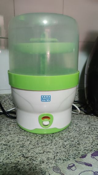 estelirizador de biberones Easy de Saro tiene una gran capacidad para esterilizar hasta 6 biberones al mismo tiempo. Podrás esterilizar los biberones, tetinas y chupetes de una manera rápida, segura y sencilla en tan sólo 9 minutos. Utiliza el método más tradicional y efectivo de esterilización: vapor caliente (sin químicos ni añadidos)