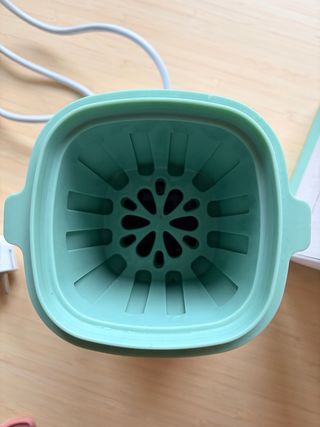 Calienta biberones y comida para bebé de la marca Avent. - Modelo Express. - Color blanco y azul. - Tiene un pequeño defecto en el plastico que no afecta la función.