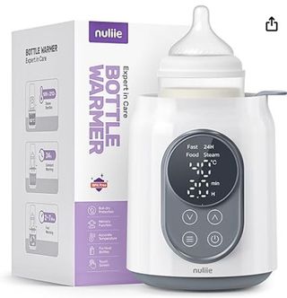 Nuliie NUBW001 Completamente nuevo, en su caja original y sin haberla estrenado. (fue un regalo). Calentador de biberón 6 en 1 con control de temperatura inteligente, temporizador, pantalla LCD y apagado automático, para calentar y descongelar la leche materna o la leche infantil, sin BPA. Se adapta todo tipo de biberones: biberon de cuello grueso, biberon estrecho, biberon estándar, bolsa de almacenamiento de leche materna. Diversas funciones: - Calienta biberones - Calienta comida - Esterilización - Descongelación lenta - Mantenimiento caliente de biberones Pantalla tactil y de facil manejo. En Amazon esta a 43 €.