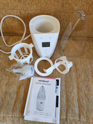 Calienta biberones miniland. No se a usado nunca, se compró por capricho funciona tanto a 220V para usarlo en casa como a 12V para usarlo mientras vas de viaje.