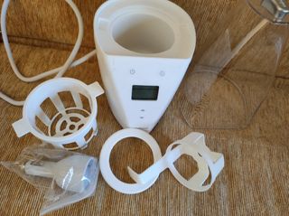 Lote de varias cosas necesarias para lactancia y cuidados del bebé. Incluye un sacaleches Un calienta biberones Un termo Un dosificador de cereales, leche ,etc