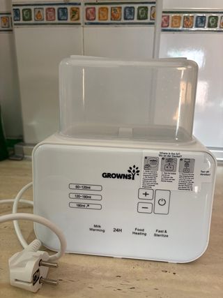 Vendo calienta biberones y esterilizador Grownsy, como nuevo (casi sin uso) - Calienta biberones con función rápida. - Esterilizador rápido. - Capacidad: 60-120ml, 120-180ml, 180ml. - Función de calentamiento de 24h. - Embalaje original. Venta en persona, en Leganés o Getafe