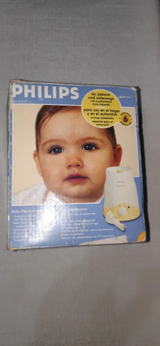 Calienta biberones de la marca Philips, ideal para usar tanto en casa como en el coche. - Incluye adaptador para el automóvil. - Sistema de protección contra sobrecalentamiento. - Doble aislamiento. - Selector de temperatura con 17 posiciones.