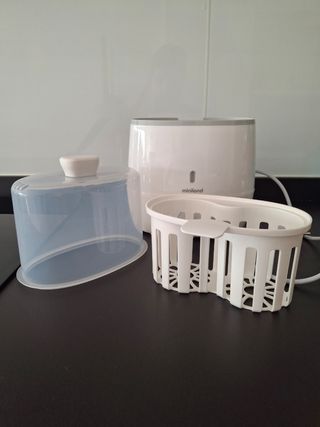 Calienta biberones doble, marca Miniland warny twin. Comprado el año pasado. Perfecto estado se ha usado muy poco. Falta caja original. Resto de piezas y funcionamiento como nuevo. Esteriliza y calienta.