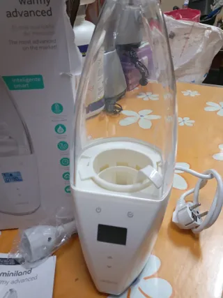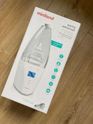 Vendo calienta biberones y potitos miniland Warmy Digy. Está en buen estado. - Calienta biberones y potitos de forma uniforme. - Calentamiento rápido en 3 minutos. - Ideal para calentar leche materna. - Apagado automático de seguridad.