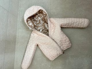 Chaqueta acolchada con capucha, ideal para el frío. - Exterior brillante en tono rosado. - Interior forrado en color rosa. - Cierre de cremallera frontal. - Reversible