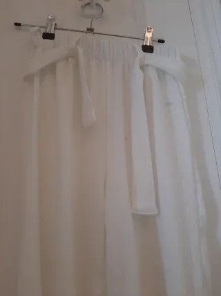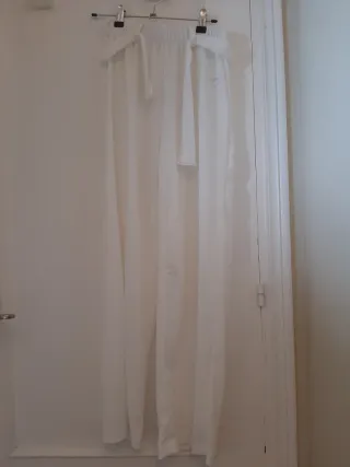Pantalón blanco de tela, ideal para cualquier ocasión. Es una prenda nueva. - Talla 12-13. - Cintura con elástico y lazo. - Tejido ligero y con textura.