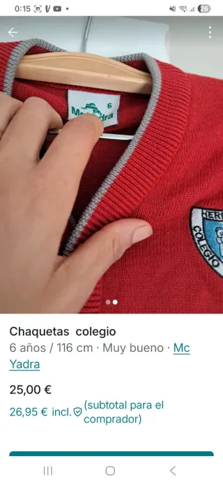 Dos chaquetas rojas de uniforme escolar para colegio. - Talla 6 años / 116 cm. - Color rojo con detalles grises. - Cierre de botones. - Escudo del colegio bordado.