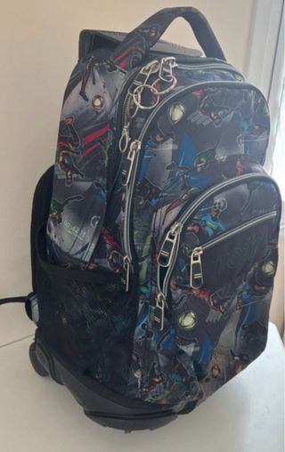 Mochila escolar de la marca TOTTO con un divertido estampado de superhéroes. Cuenta con ruedas para facilitar su transporte. - Diseño con personajes de cómic. - Compartimentos amplios. - Bolsillo lateral de malla.