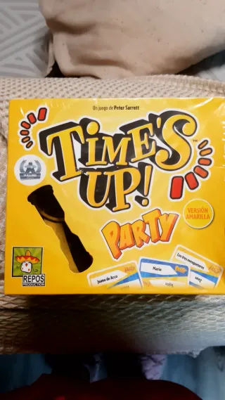 Juego de mesa Time's Up! Party, versión amarilla. Precintado sin abrir. - Juego de Peter Sarrett. - Incluye cartas con nombres como Juana de Arco, Mario, Los tres mosqueteros y Snaz. - Producido por Repos Production.