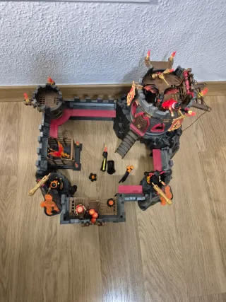 Fortaleza de los bandidos de Burham de PLAYMOBIL. Un set de juego detallado para recrear emocionantes aventuras. - Diseño de castillo con torres y murallas. - Incluye accesorios temáticos de bandidos. - Colores predominantes: gris, rojo y detalles en dorado.