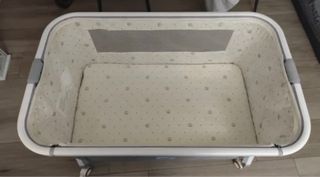 Minicuna para bebé de 0 a 6 meses. Ideal para las primeras etapas del bebé. - Estructura de metal. - Laterales de malla transpirable. - Ruedas para facilitar el movimiento. - Incluye cesta inferior de almacenamiento.