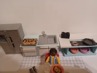 Set de cocina Playmobil con varios accesorios para crear un ambiente de hogar. - Incluye figuras y mobiliario. - Ideal para coleccionistas y juego infantil.