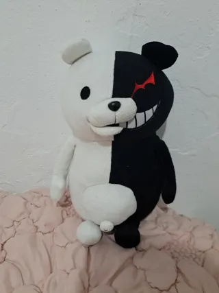 Peluche del personaje Monokuma. - Diseño bicolor blanco y negro. - Ojo derecho con detalle rojo. - Boca con dientes afilados.