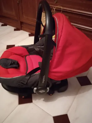 Conjunto trío de carrito “Peg Perego”: - Silla de paseo, es reversible y arnes de seguridad 5 puntos. - Capazo, con asa de transporte, red de ventilación, visera parasol y con opcion de levantar la zona de la cabeza para elevar al bebé. - Silla grupo 0, apenas se ha usado 1 semana.