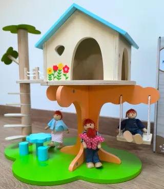 Fantástica casa del árbol de madera de Mundo Diver, un lugar mágico para jugar. En su caja original. Incluye: - Casa del árbol 40 x 30 x 35 cm - Viene con cuatro muñecos Potencia el juego simbólico, el desarrollo de la imaginación y la creación de mini mundos. Es un juguete intergeneracional y duradero.
