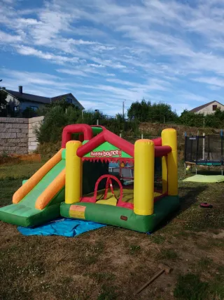 Castillo hinchable para niños, perfecto para usar en exteriores. Incluye un divertido tobogán. Medidas: 4,5 x 4,0 x 2,5m (ancho/ fondo/ alto) Capacidad: 6/ 7 niños. Edad recomendada hasta 5 años. - Diseño colorido y atractivo. - Estructura resistente para mayor seguridad. - Ideal para fiestas y juegos al aire libre. El castillo se encuentra guardado en su bolsa desde hace 5 años. Tiene dos motores de aire. Pierde aire por algunas partes y seria necesario parchearlo. Se vende tal cual esta. No hago envios ya que pesa mucho.