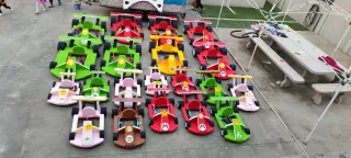 Vendo 20 Karts temáticos de Mario Bros, perfectos para disfraces o eventos. - Diseños inspirados en los personajes de Mario. - Hechos a mano. - Colores vivos y llamativos. - Solo se usaron para 5 desfiles de carnaval. - Todos en buen estado menos 2, que fueron reparados.