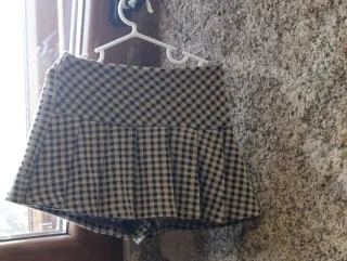 Falda de cuadros para niña con un diseño escocés. - Estampado a cuadros en tonos rosa pastel y marrón. - Detalle de botones en la parte delantera. - Diseño plisado.