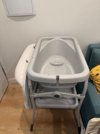 Bañera cambiador con estructura metálica y bandeja. - Colchoneta acolchada. - Diseño moderno y funcional. Solo hemos usado un poquito la bañera, el resto sin estrenar