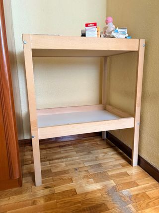 Cambiador de bebé de madera de IKEA. Ideal para la habitación infantil. - Estructura de madera clara. - Superficie de cambio blanca. - Bandeja inferior para almacenamiento. Usado 5 meses. Se entrega vacio sin cajas no cosas