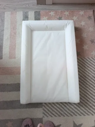 Cambiador de bebé de la marca Ikea. Es acolchado y tiene los laterales elevados para mayor seguridad. - Color blanco. - Material impermeable y fácil de limpiar.